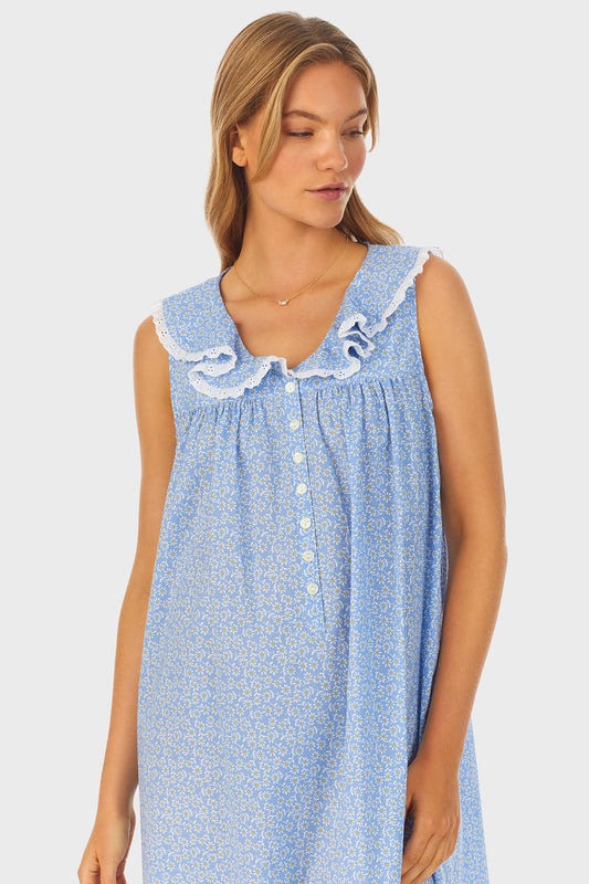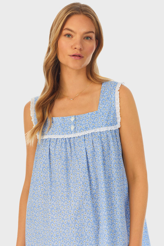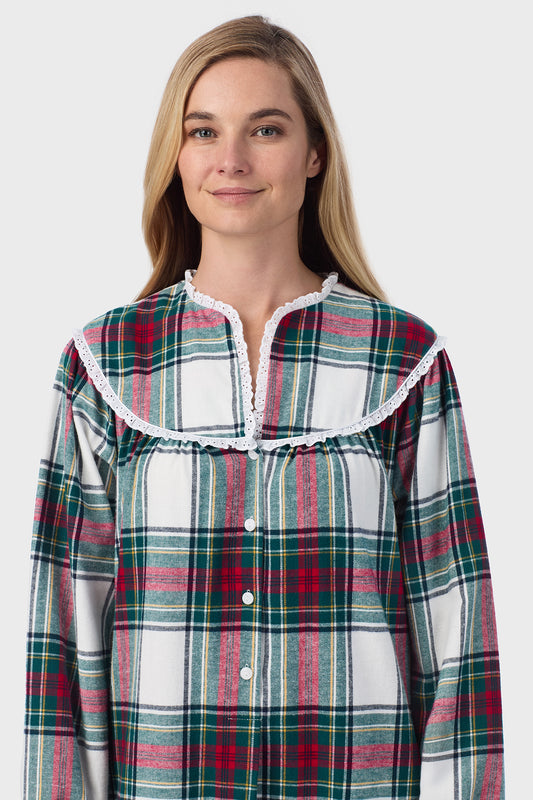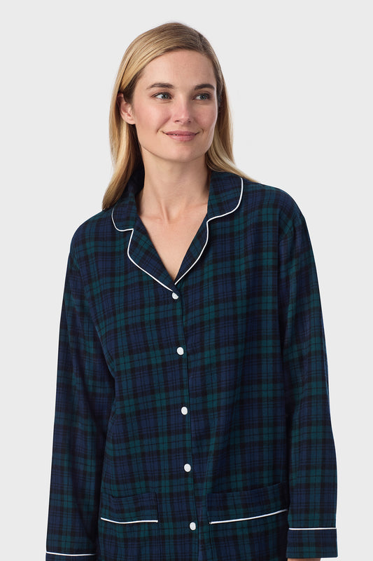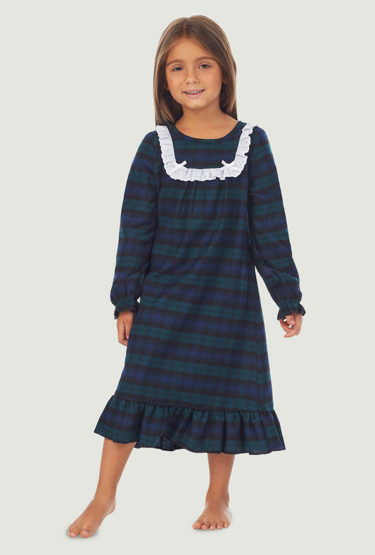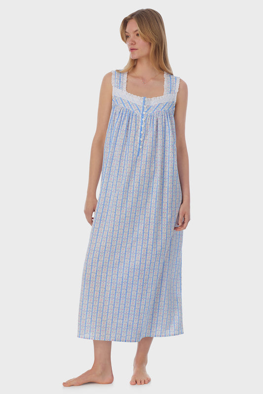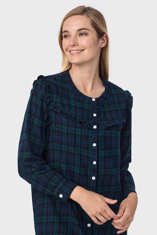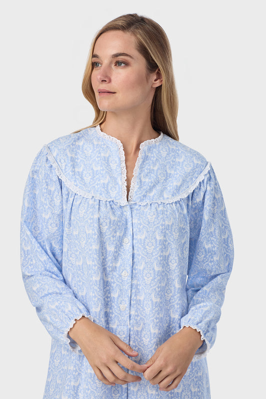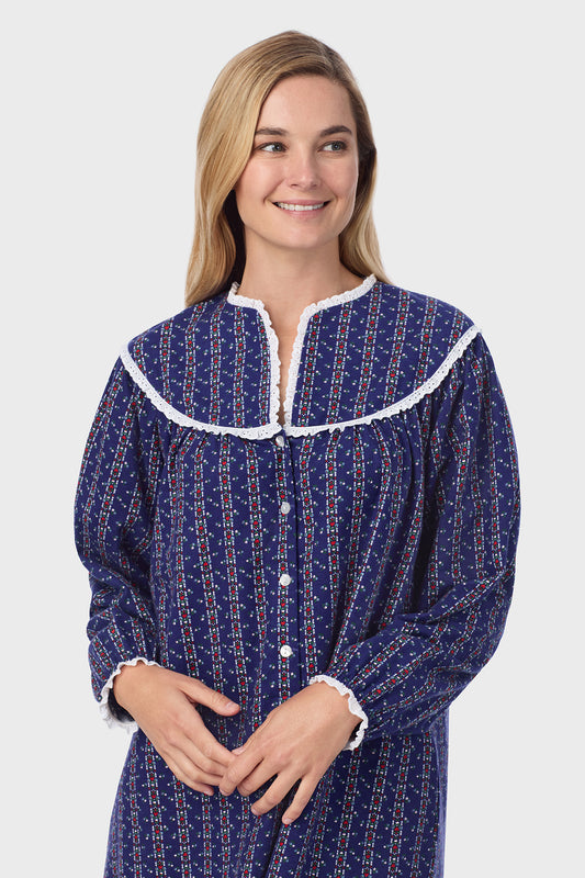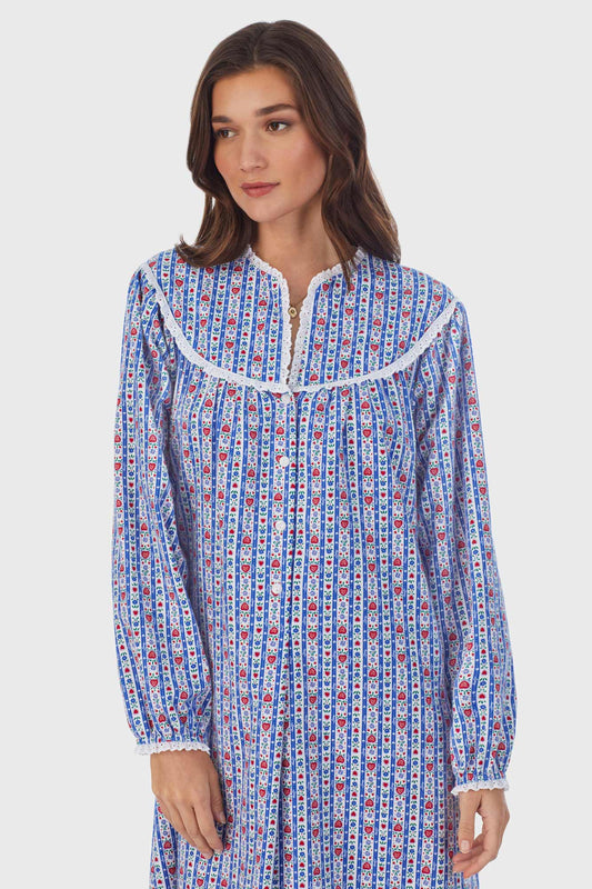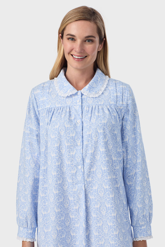 Classic Blue Tyrolean Stripe Flannel Nightgown