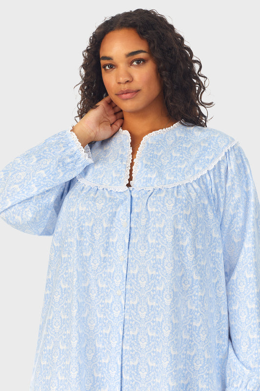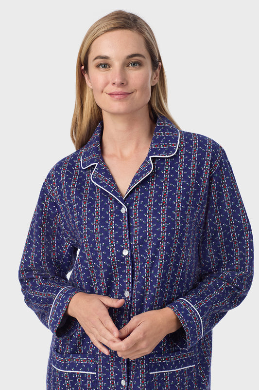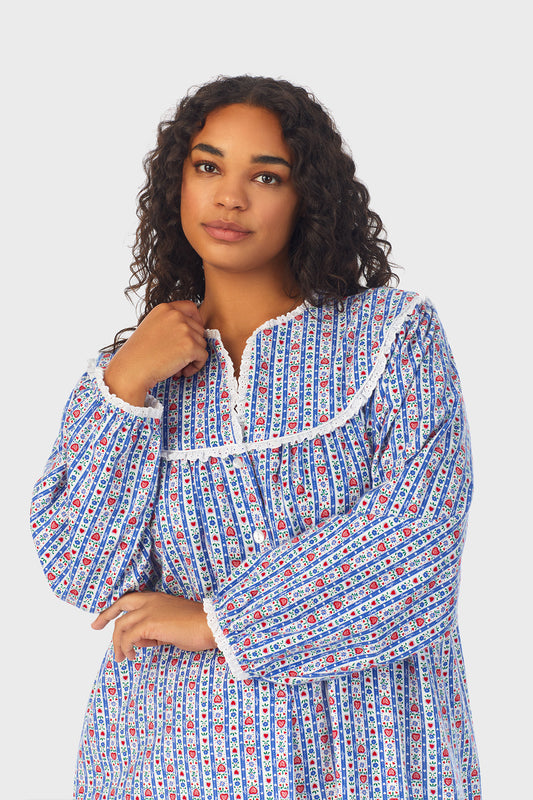 Classic Blue Tyrolean Stripe Flannel Nightgown Plus