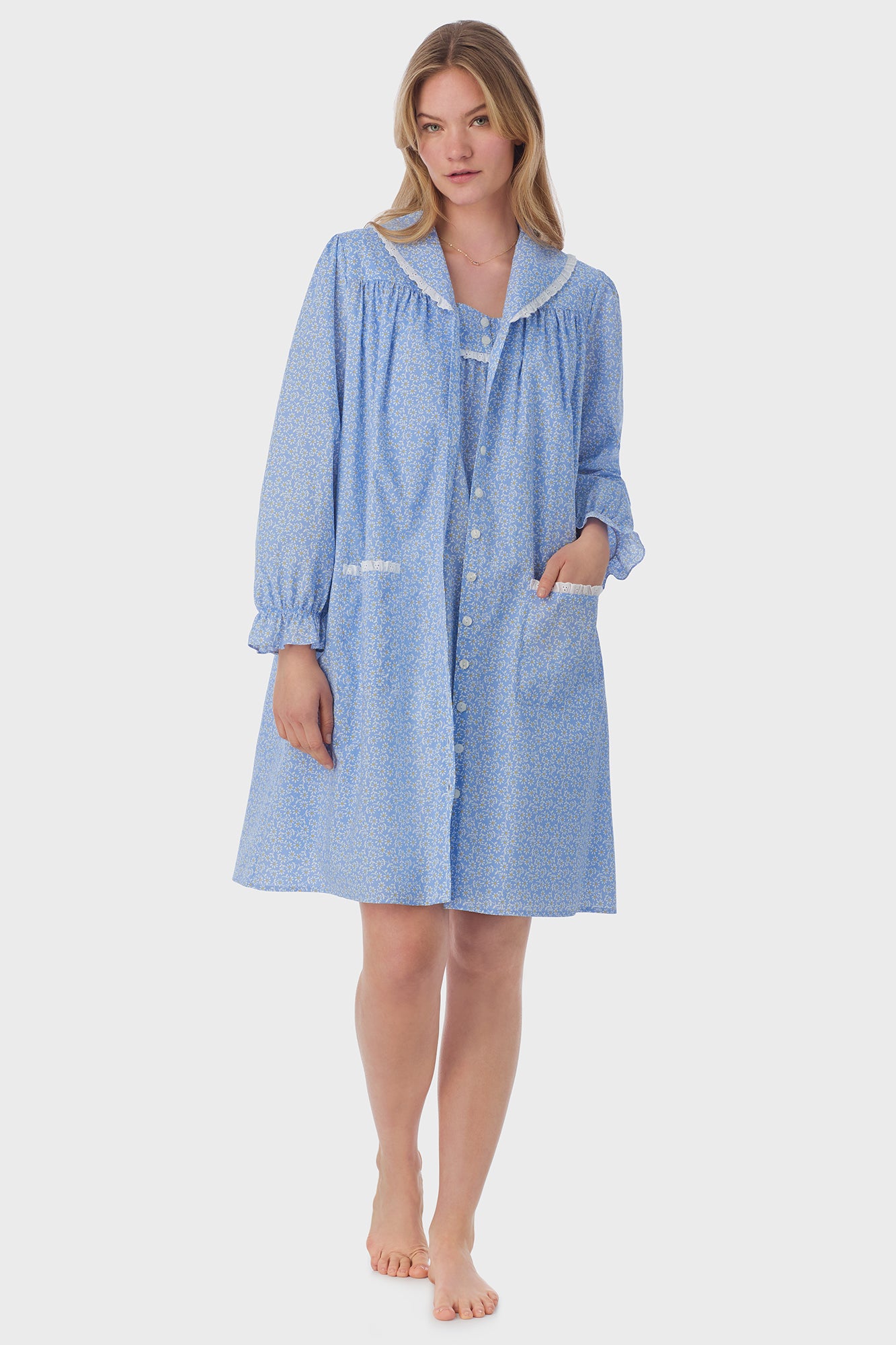 - elastic ruffle sleeves and full button front with Lanz Logo Buttons.